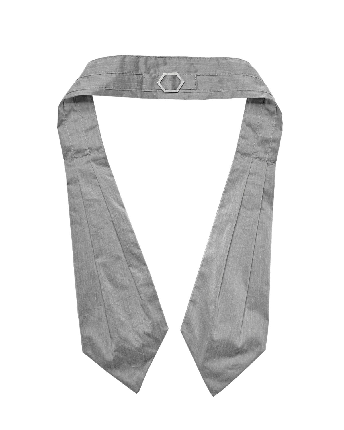 Crafted from luminous, muted grey satin, the Inox Ascot Tie’s linear construction and tonal stitching define its framework. The signature hexagon steel buckle at the rear compliments the geometrical design.